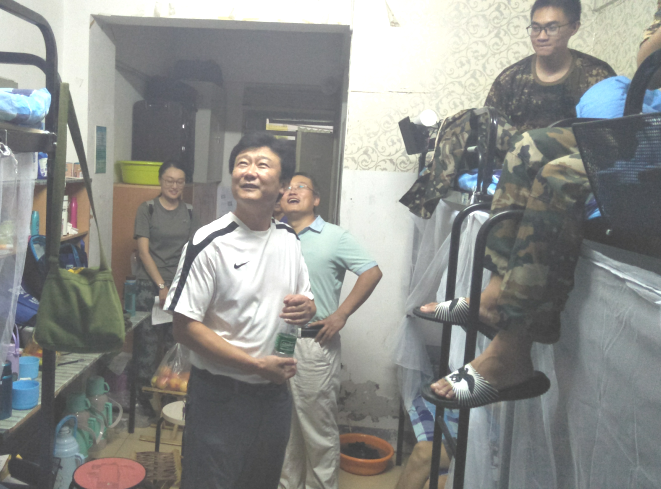 走访过程中,柳书记对卫生较好的宿舍提出表扬,强调新生们军训期间一定要搞好宿舍卫生,这有助于他们保持积极向上的心态,以最佳的精神状态投入到军训以及日后的学习中去。杜经理关切询问同学们的身体状况和生活情况,鼓励同学们加强锻炼,磨练意志,认真完成军训任务,同时他希望同学们能够学习军人艰苦奋斗的作风,保持昂扬的斗志,在锻炼自身的同时,增强团队协作的意识。曲书记更是亲切的和新生们聊家常,询问是否适应宿舍生活,吃饭口味习不习惯,军训累不累等琐事,让新生们深刻感受到了我们环材大家庭的温暖。