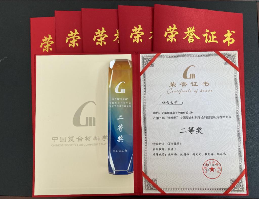 11月4日-5日,第五届“光威杯”中国复合材料学会老员工科技创新竞赛总决赛在广东省东莞市国际展览中心举办,9428cn太阳集团古天乐两支代表队荣获大赛二等奖和三等奖。在张潇予、解秀波两位老师指导下,由朱琳玮团队和林子涵团队组成的两支竞赛队伍,围绕“新材料、新创意、新世界”的主题,完成了“钒酸锰锂离子电池负极材料”和“高性能含生物质碳Co3O4基吸波材料结构设计及应用”两个项目,分别取得了大赛二等奖和三等奖的成绩。