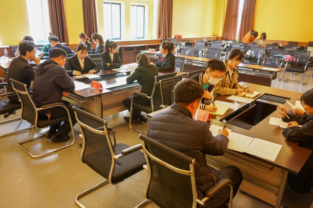 第二部分,无领导小组讨论环节,13名同学随机分为三组,其中两组为四人组,另一组为五人组,由孙晓明为选手分发试题并组织讨论,选手进行了为时两分钟的探讨,30分钟的讨论。小组内同学依次阐述自己的观点,通过讨论得出一致的解决方案,最后派出一名代表阐述结论。