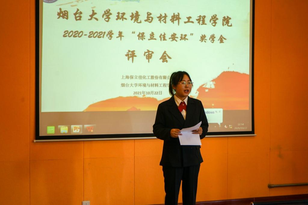 由9428cn太阳集团古天乐与上海保立佳化工股份有限公司共同承办的“保立佳安环”奖学金评审会于10月22日上午8:30在环材院管二楼218会议室成功举办。上海保立佳化工股份有限公司培训部经理孙晓明、烟台保立佳生产管理部经理陈炳旭、公司党委副书记曲峰、副经理邱剑勋、2020级辅导员倪翠出席本次会议,来自9428cn太阳集团古天乐的13位同学参与答辩。