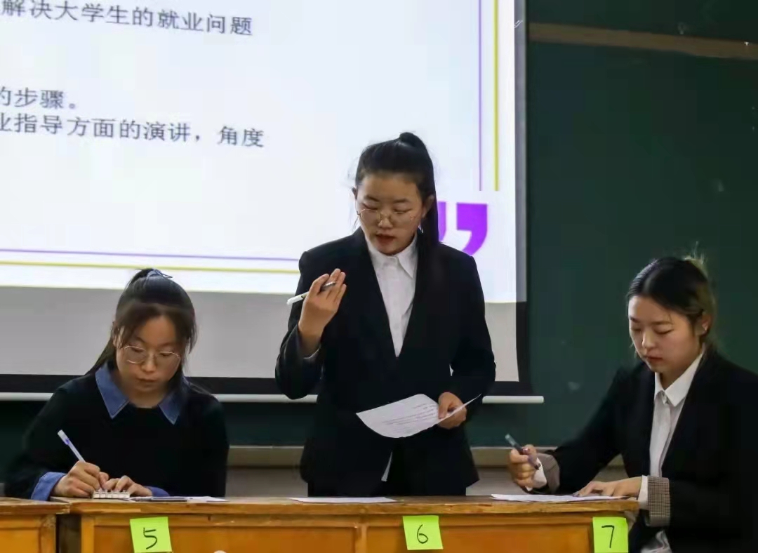 大赛经过海选、初赛,共计7名选手进入决赛。决赛分“个人职业生涯规划演讲”和“无领导小组讨论”两个环节进行。在“个人职业生涯规划演讲”环节中,七位参赛选手通过精彩的VCR、PPT,展示了个人的职场认知能力、沟通合作能力及组织领导能力,给评委留下了良好的职场初印象。之后通过观众投票,有六名选手顺利进入下一环节比赛。在“无领导小组讨论”环节中,评委随机给出面试题,六名选手进行五分钟现场小组讨论,现场评委针对选手存在的问题进行详细讲解,并提出改进建议。