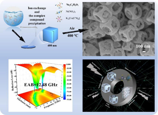 图1 钴酸镍/碳复合吸波材料的合成工艺,形貌,吸波性能及吸波机理