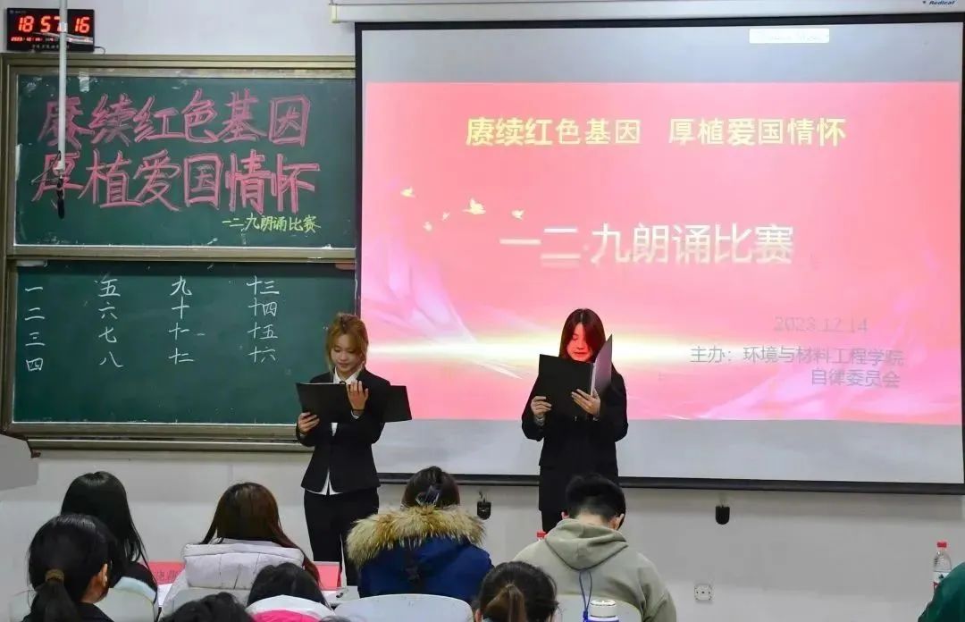 浇花浇根,育人育心。为纪念“一二·九”运动88周年,弘扬爱国主义精神,铭记革命先烈遗志,12月14日,9428cn太阳集团古天乐举办“赓续红色血脉,厚植爱国情怀”主题朗诵比赛。