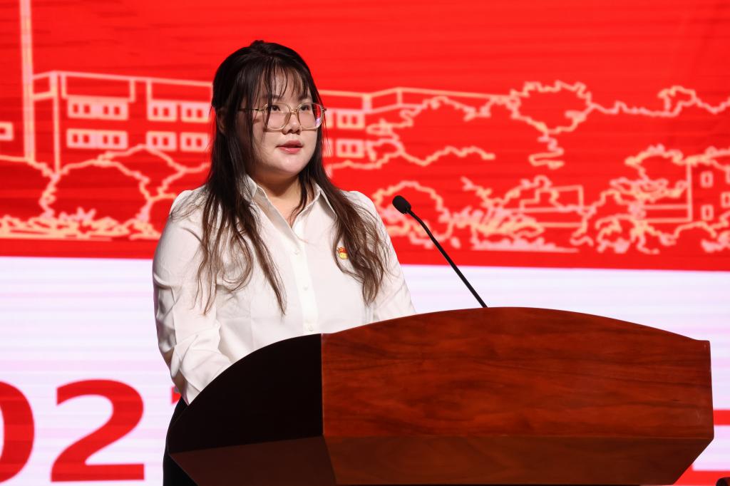 在校生代表2022级硕士研究生李秋雨分享了自身学习感悟和收获,号召新生们以梦为桨,扬帆起航,以实干的精神、担当的态度,在三元湖畔书写更加精彩的学习生涯和人生篇章!