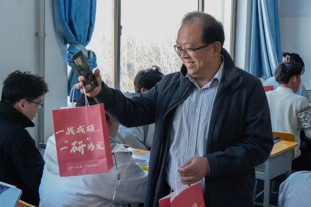 经理刘伟代表公司向正在备考的学子们致以了最诚挚的问候和鼓励。他表示,当前阶段是考研旅程中的一道重要关卡,希望同学们能够更加坚定自己的目标,保持平和的心态,坚持不懈地追求梦想。
