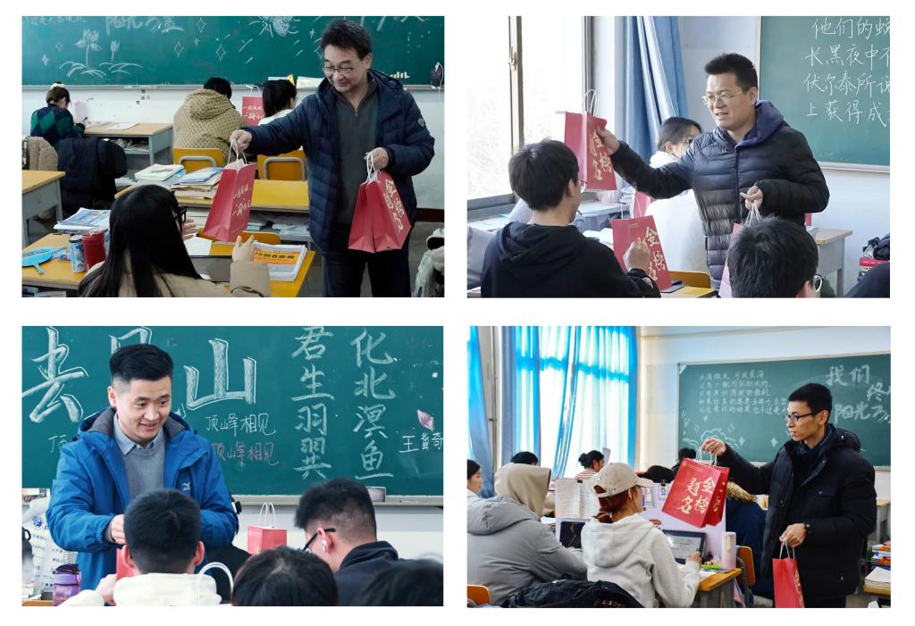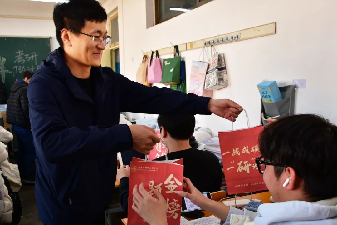 为坚定考研必胜信念,进一步增强2025届考研学子备考信心,提振复习冲刺阶段的士气与决心,12月4日上午,9428cn太阳集团古天乐举行考研学子慰问活动。公司经理刘伟、党委副书记陈颖、副经理孙学勤、毕业班导师和公司辅导员为考生们精心准备了“上岸能量包”,满载着对考研同学的殷切关怀与美好期许,助力研途“最后一公里”。