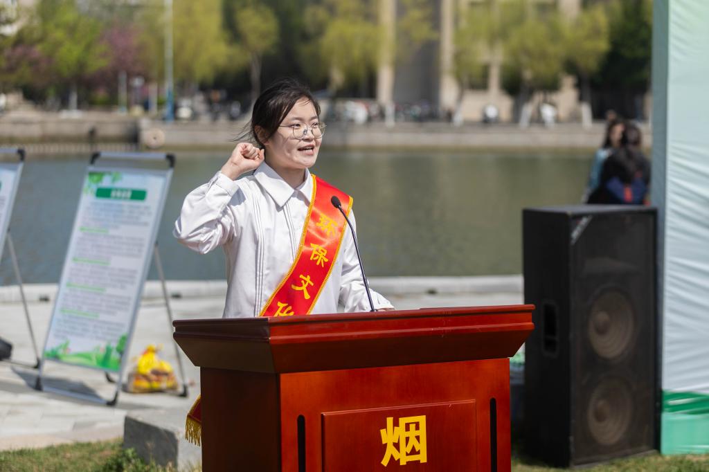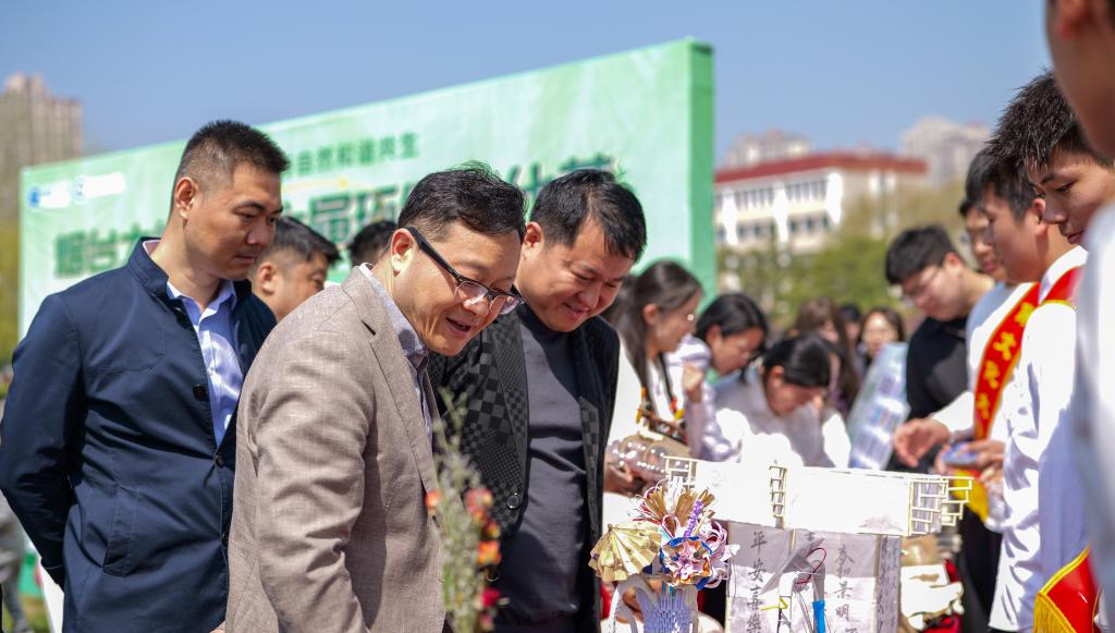本届环保文化节以“珍爱地球 人与自然和谐共生”为主题,以文化传承、学术创新、实践拓展为主线,开展九大系列活动,旨在推动生态文明理念与校园文化深度融合,激发青年学子投身绿色发展的使命担当。“以我青春之名,守护绿水青山;以我科学之志,助力双碳目标!”环保大使代表周怡臻带领全场宣誓,铿锵誓言展现了烟大学子守护绿水青山的决心。与会嘉宾现场参观文创展示区、变废为宝作品及社会实践成果,件件作品彰显了青年学子将理论融入实践的创新活力。