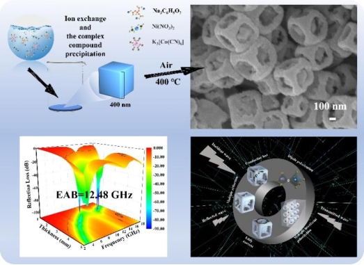 图1钴酸镍/碳复合吸波材料的合成工艺,形貌,吸波性能及吸波机理