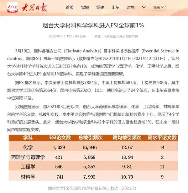 公司现有山东省一流学科1个、一级学科硕士学位授权点2个、专业硕士学位授权点2个。拥有山东省黄河流域新型污染物控制及智能决策协同创新中心、山东省核能与储能关键材料特色实验室、山东省材料科学高层次人才工作站等多个省部级科研平台。2022年材料科学学科进入ESI全球前1%,2023年材料科学与工程、环境科学与工程两大学科全部入围软科世界一流学科排名。